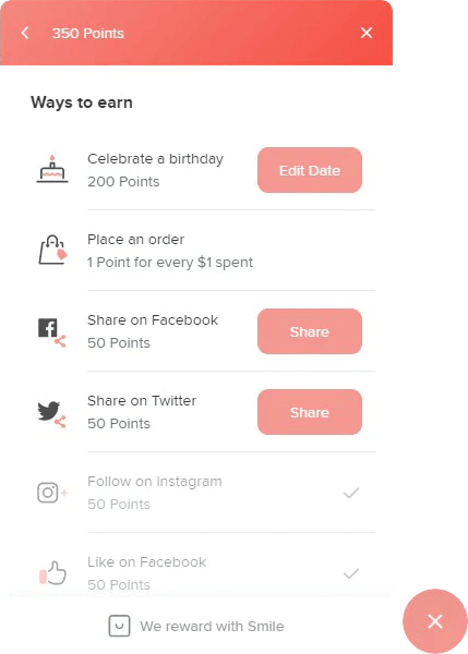 2. Use the rewards widget to earn points on social interactions, and to save your birthday.